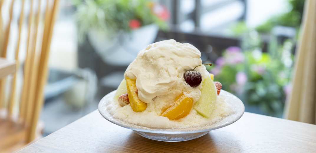 ふわふわのミルクかき氷の上に大ぶりのフルーツをトッピング。自家製生クリームのあっさりとしたミルク味のかき氷とフルーツの酸味がマッチして、おいしい~! 提供されたときに「意外と大きい!」と感じるかもしれませんが、あっさりとした味わいのため、ペロリと食べてしまいます。また、テイクアウトも可能です。