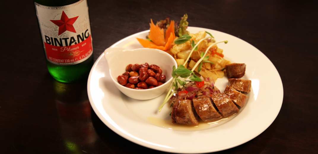 店名にもなっているビンタンは、インドネシア語で「星」のこと。ビンタンビールのラベルにも星があしらわれています。
