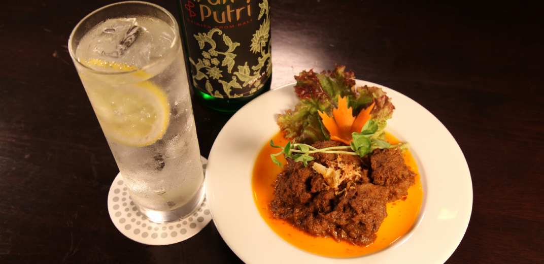 「ルンダン」に合わせるオススメのお酒は、バリ焼酎『アラック・プトゥリ(650円・グラス)』。お米とココナッツを蒸留して作られたお酒で、バリ島では儀式の際に神々に捧げるお酒として古くから親しまれています。