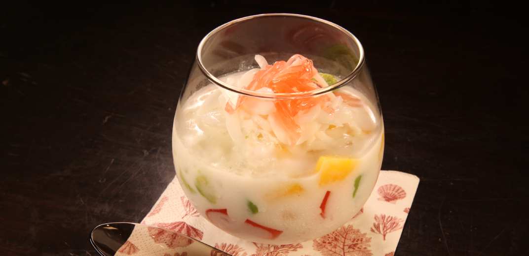 クラッシュアイスにココナッツ、アボカド、ジャックフルーツの実が入っていて、いろんな味わいが楽しめるデザートです。