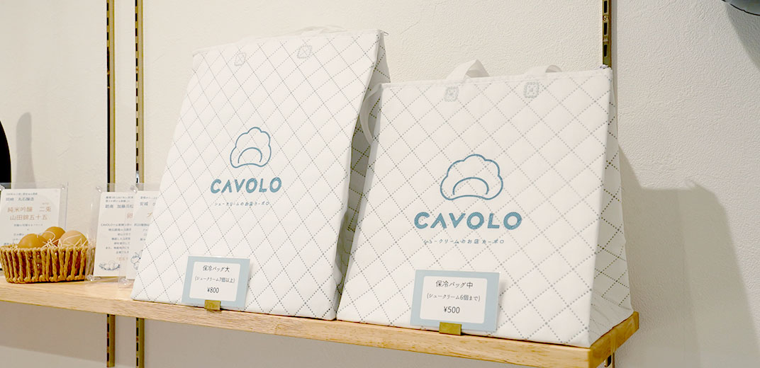 贈り物としてシュークリームを購入する場合は、カーボロのロゴが入ったオリジナルデザインの保冷バッグも可愛くてGOOD。