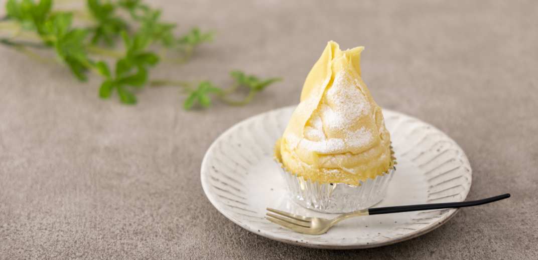 「マロンペーストを絞っていないけれど、これはモンブラン…?」と思いながらも口に含むと、やさしい栗の味わいが広がり、モンブランだと納得。マロンクリーム、ホワイトチョコ、生クリーム、卵黄を混ぜ合わせて炊いた生地を薄く伸ばし、山のように形作ってできています。固そうに見えますが、くちどけはなめらか。中には栗のペースト、ロールケーキが入っており、シンプルながらも優しい味わいで、子どもにも人気の商品です。