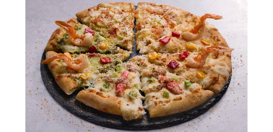 ピザといえば、季節ごとに登場する限定商品も楽しみのひとつ。ドミノ・ピザではこの冬、海老と蟹をふんだんに使用した4種類の味を楽しむことができます。また、それぞれの素材が引き立つようにソースも4種類(バジルソース・ビスクソース・カクテルソース・トリュフマヨソース)。