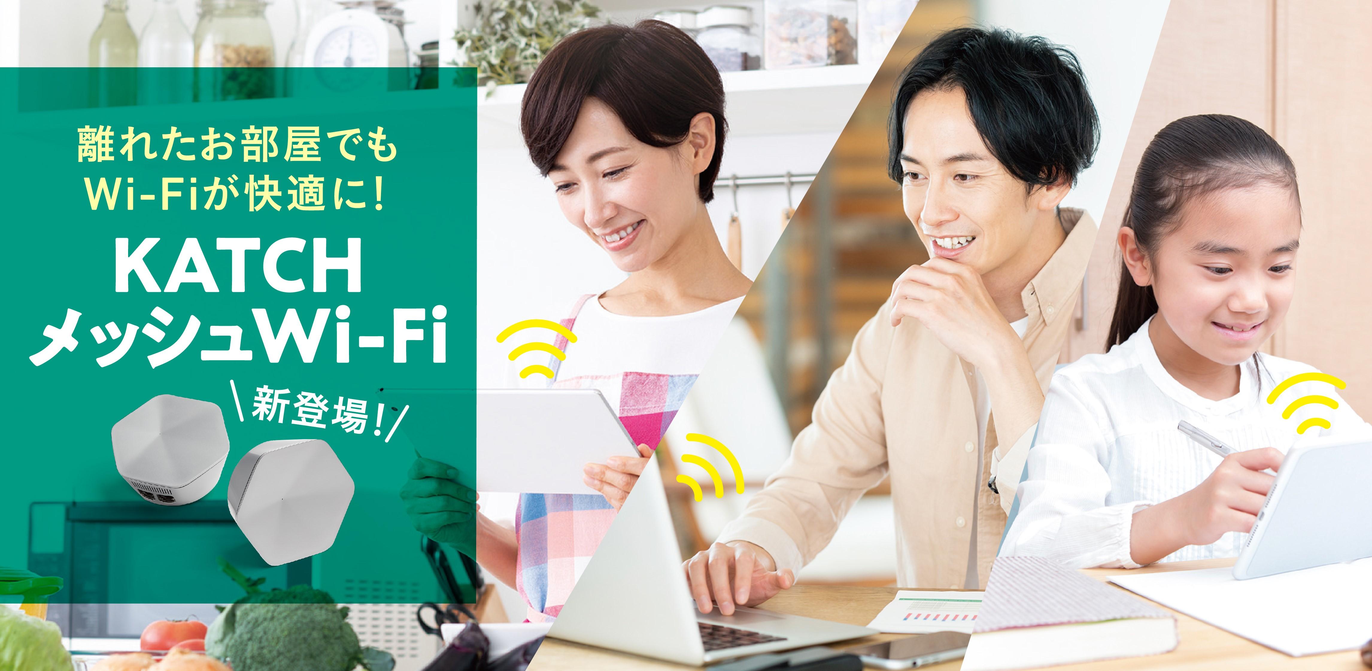 テレワークや在宅学習のニーズが高まる中、より快適にWi-Fiをお使いいただけるよう、 当社インターネットサービスご加入者さまに「KATCHメッシュWi-Fi」の提供を開始いたします。